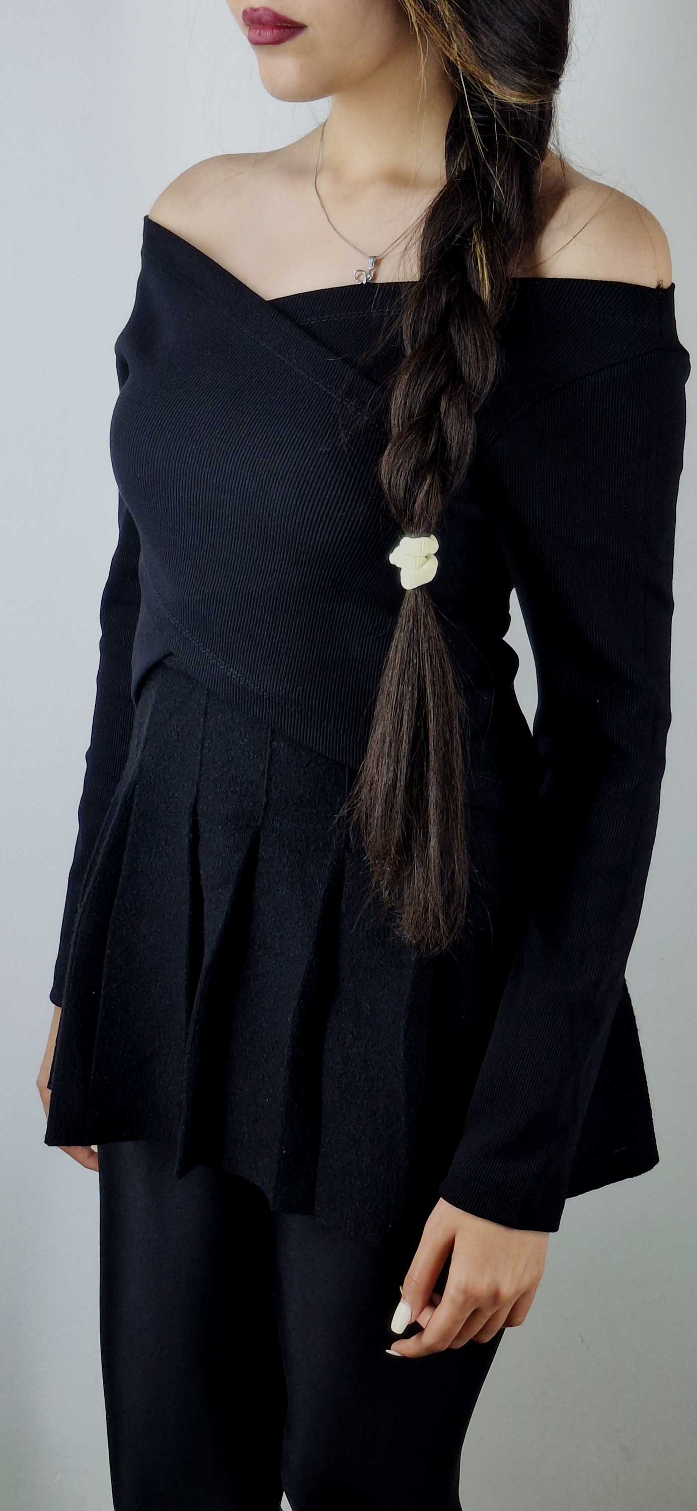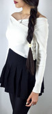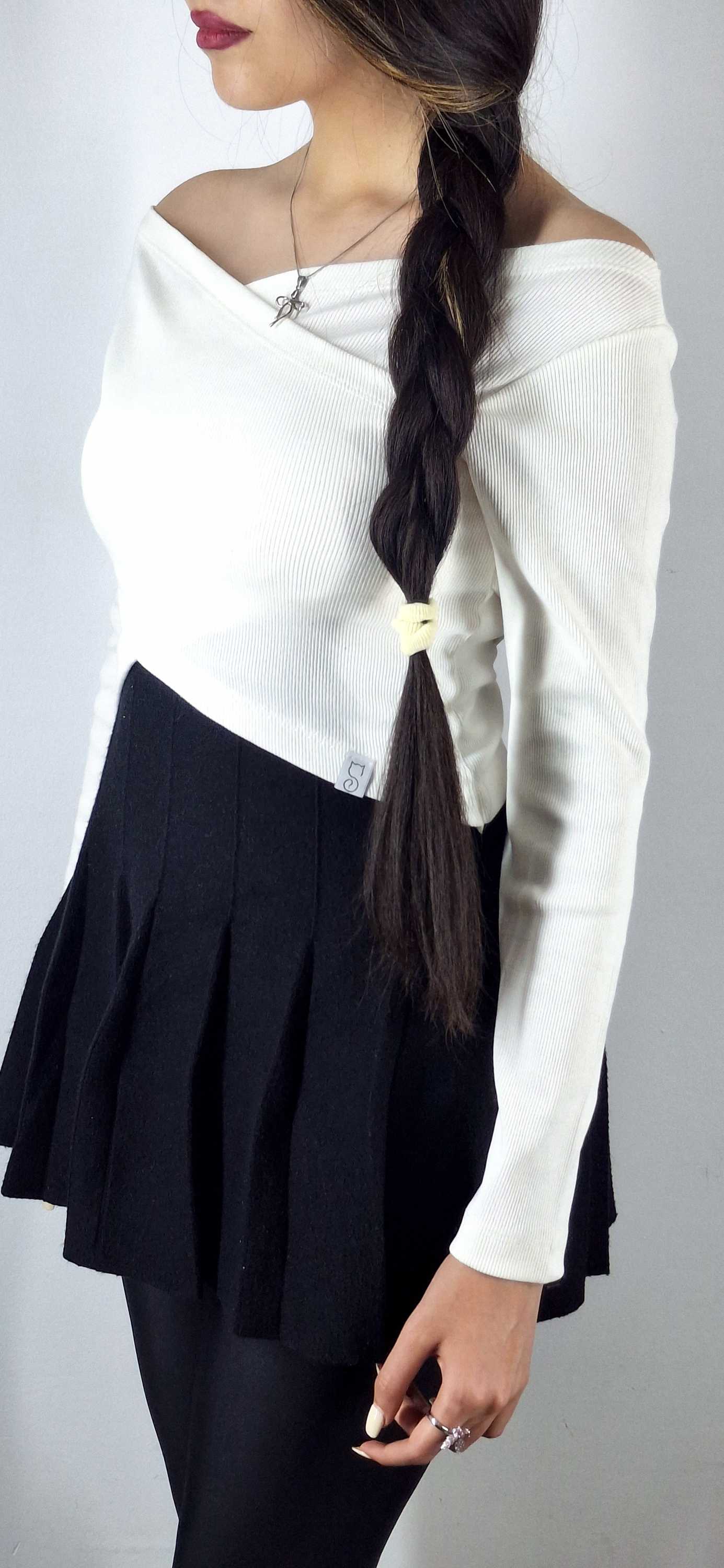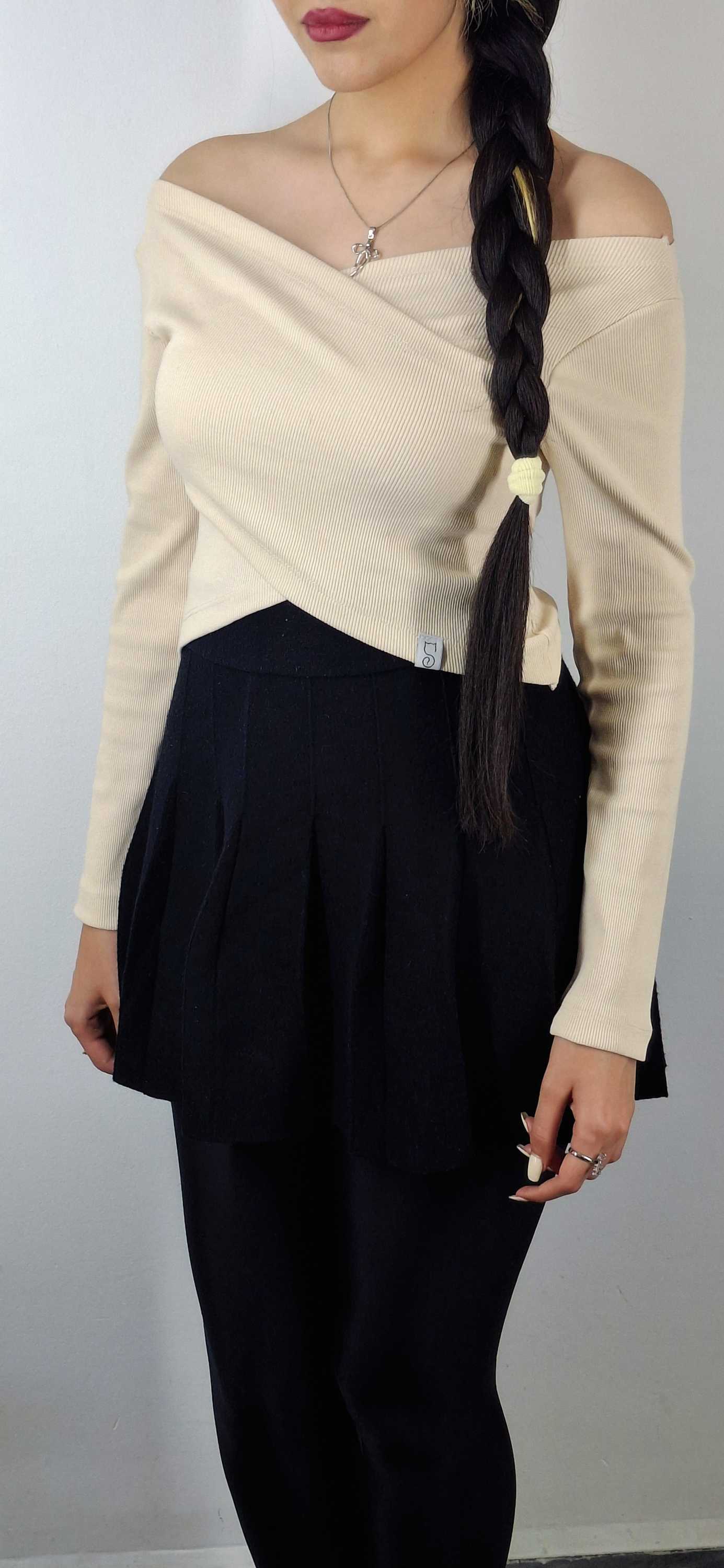 طراحی خلاقانه: این کراپ تاپ با الهام از مدلهای چپ و راست (ضربدری)، فرم زیبایی به گردن و شانهها میبخشد و استایلی کاملاً زنانه و ظریف ایجاد میکند.